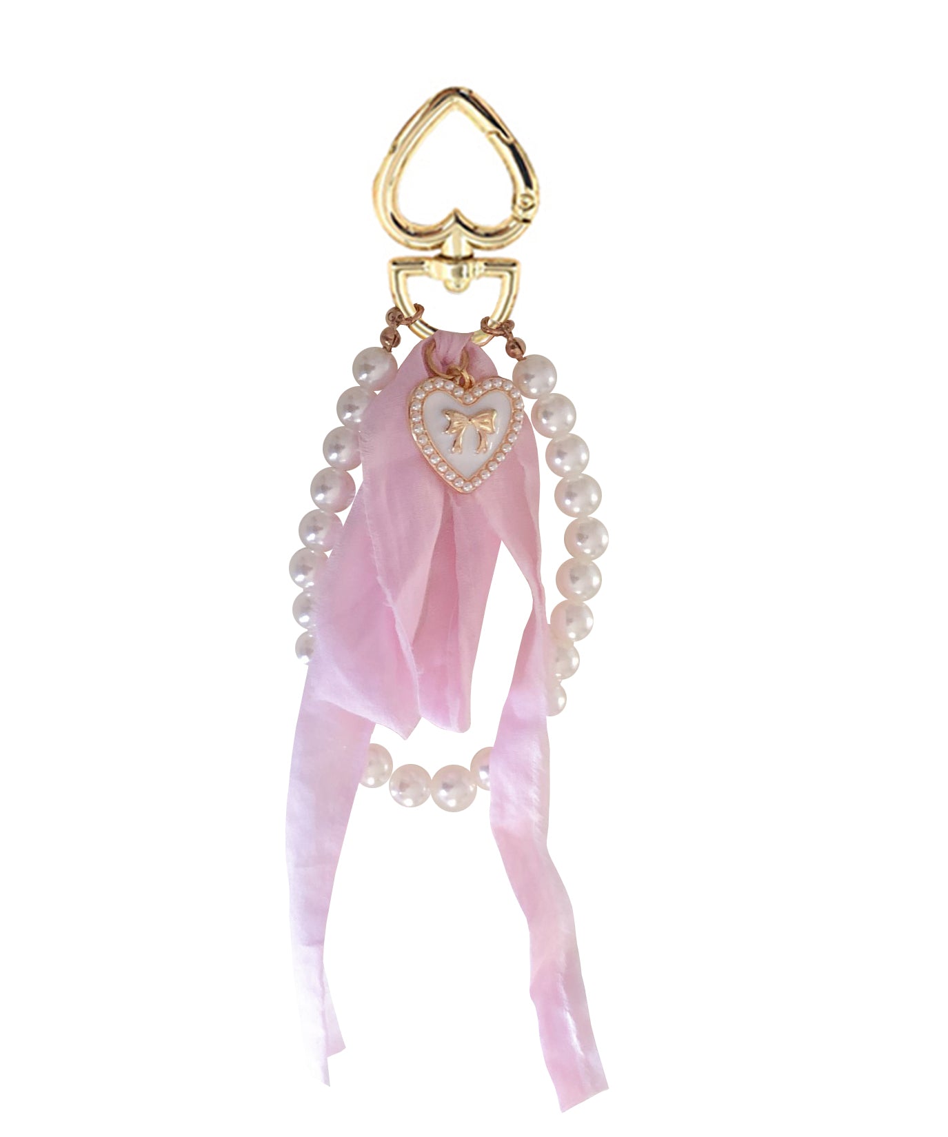 Our gorgeous handmade keychain is the perfect accent to add to any handbag or tote. Features a beautiful white + pearl heart charm and a pink accent ribbon. It is a beautiful addition to any handbag or accessory. Exclusive design by WILD HEART xo.